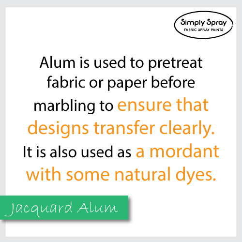 When you need to pretreat fabric or paper before marbling to ensure that designs transfer clearly you can use Alum, it serves as a mordant with some natural dyes.
