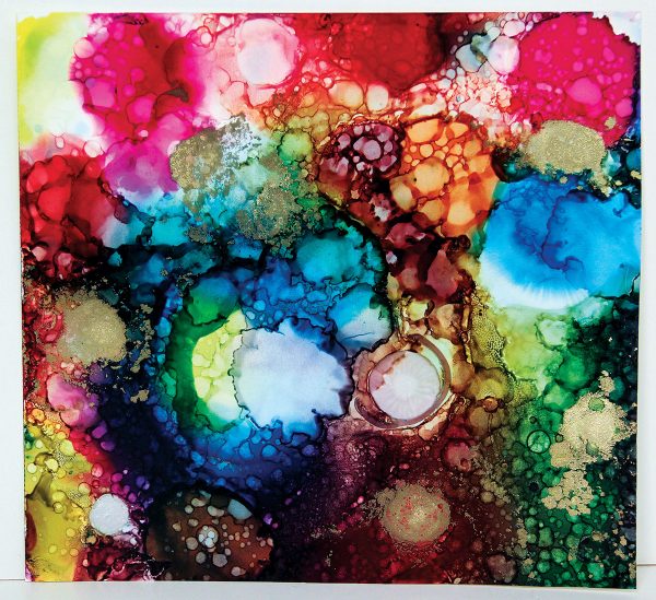 Spritz or brush layers of color over color. When wet, each layer will push aside the under layers creating amazing effects. Allowing each layer to dry will produce beautiful glazes and truly spectacular colors with clarity and depth.