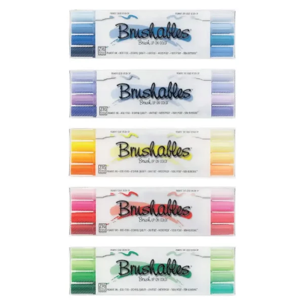 The ZIG Memory System Brushables features two brush tips. One being a popular colour from the ZIG Memory System range and the other being a 50% tint of that colour. With this unique quality it is ideal for brush layering effects and for creating two-toned colouring effects when rubber stamping.